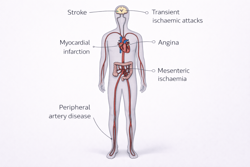 • Secondary prevention: after diagnoses such as angina, myocardial infarction, TIA, stroke, or peripheral arterial disease